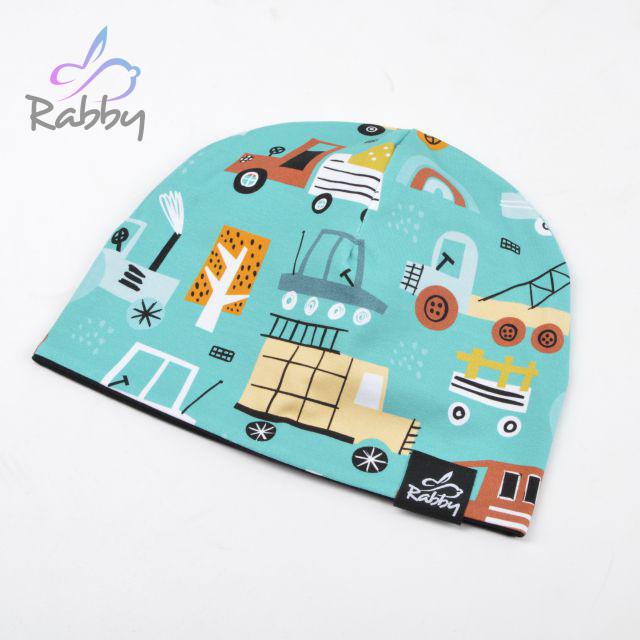 Čepice je ušita z bavlněných materiálů. Složení: 95 % bavlna, 5 % elastan. Díky elastanu je čepice krásně pružná a neztrácí tvar. Látka se vzorem je s kvalitní digitisk, proto se barvy při opětovném praní neopírají a neblednou.
