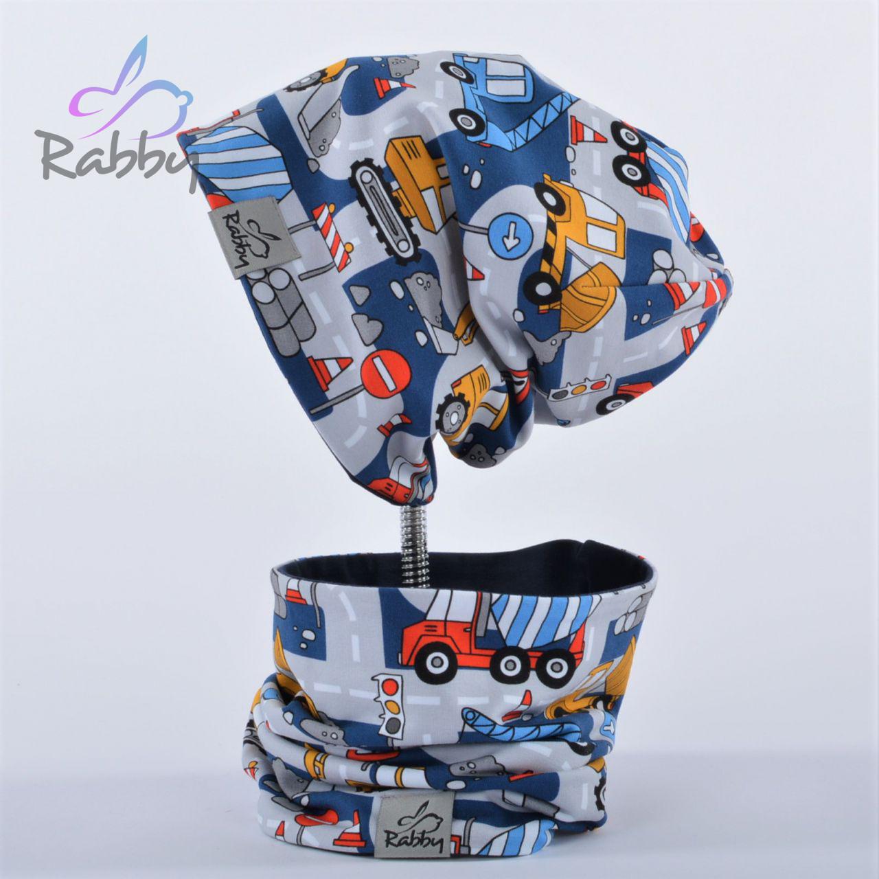 Set homeless čepice a nákrčníku auta a silnice vel. 48 (obvod hlavy 47-50 cm)