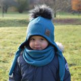 Set zimní ušanky a nákrčníku petrolejová pletenina vel. 47-50