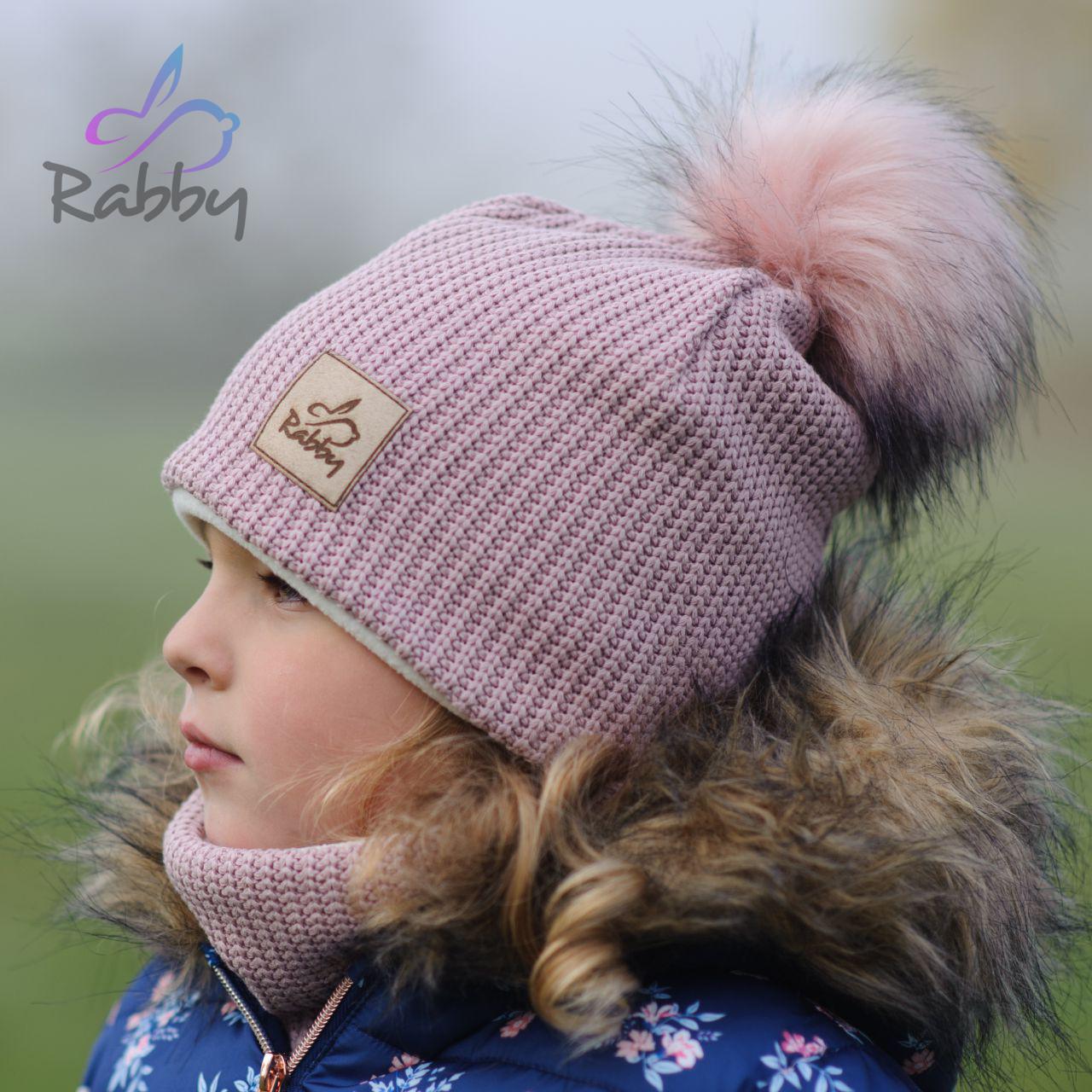Set zimní ušanky a nákrčníku růžová pletenina 2 bambule růžové