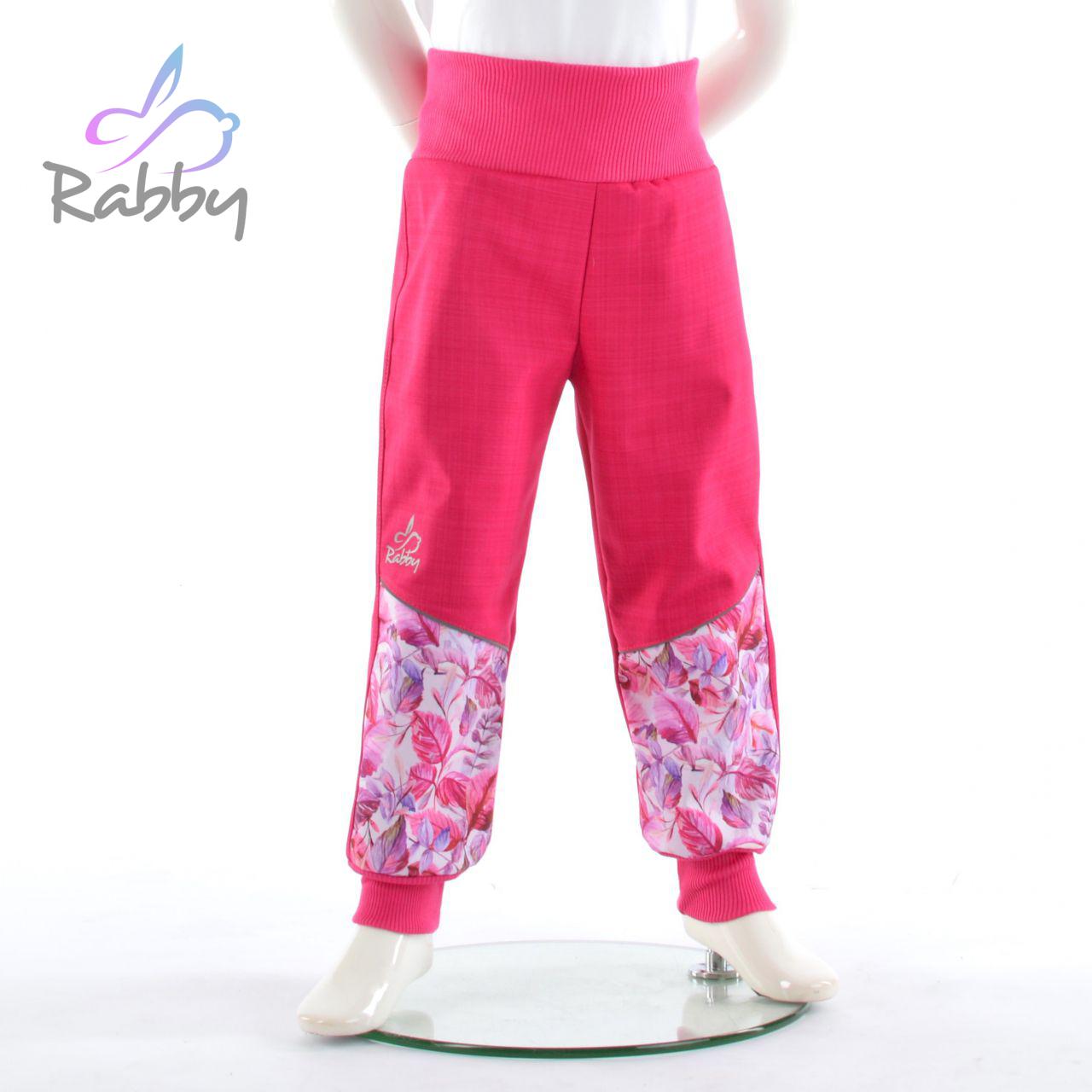 Jarní softshellové kalhoty malinové s přestřižením listy - klasický střih vel. 116