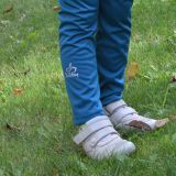 - Legíny jsou ušity z elastického softshellu. Materiál je krásně pružný a i přes užší legínový střih jsou kalhoty dětem velice pohodlné a při pohybu je nijak neomezují, netáhnou a krásně se přizpůsobí.
