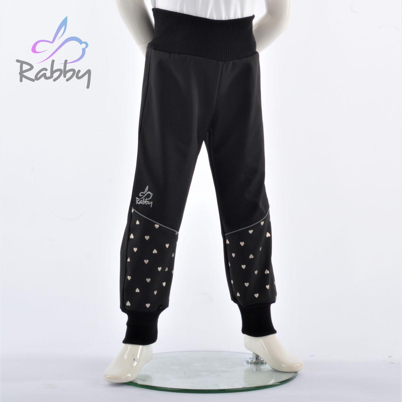 Zimní softshellové kalhoty černé s přestřižením zlatá srdíčka na černé - klasický střih vel. 128