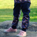 Mají vyšší náplet v pase (8 cm), do něhož je možné vložit gumu, aby kalhoty nepadaly ani těm nejhubenějším dětem.