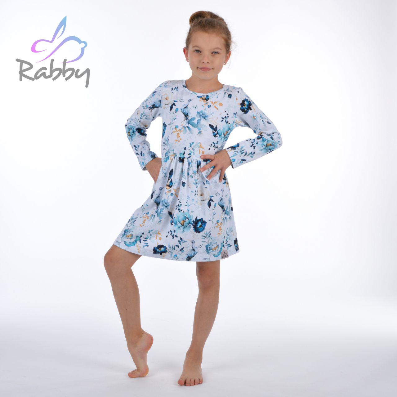 Informace o zboží Šaty řasené s dlouhým rukávem modré květy vel. 98