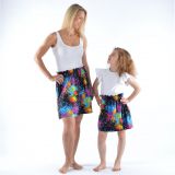 Sukně je ušita z příjemného bavlněného úpletu s kvalitním digitiskem, proto se barvy při opětovném praní neopírají a neblednou. Složení materiálu: 95 % bavlna, 5 % elastan.