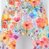 Baggy mají v pase pružnou měkkou gumu, kterou lze dle potřeby upravit na požadovaný obvod pasu dítěte. (Do velikosti 68 včetně guma není vložena.)